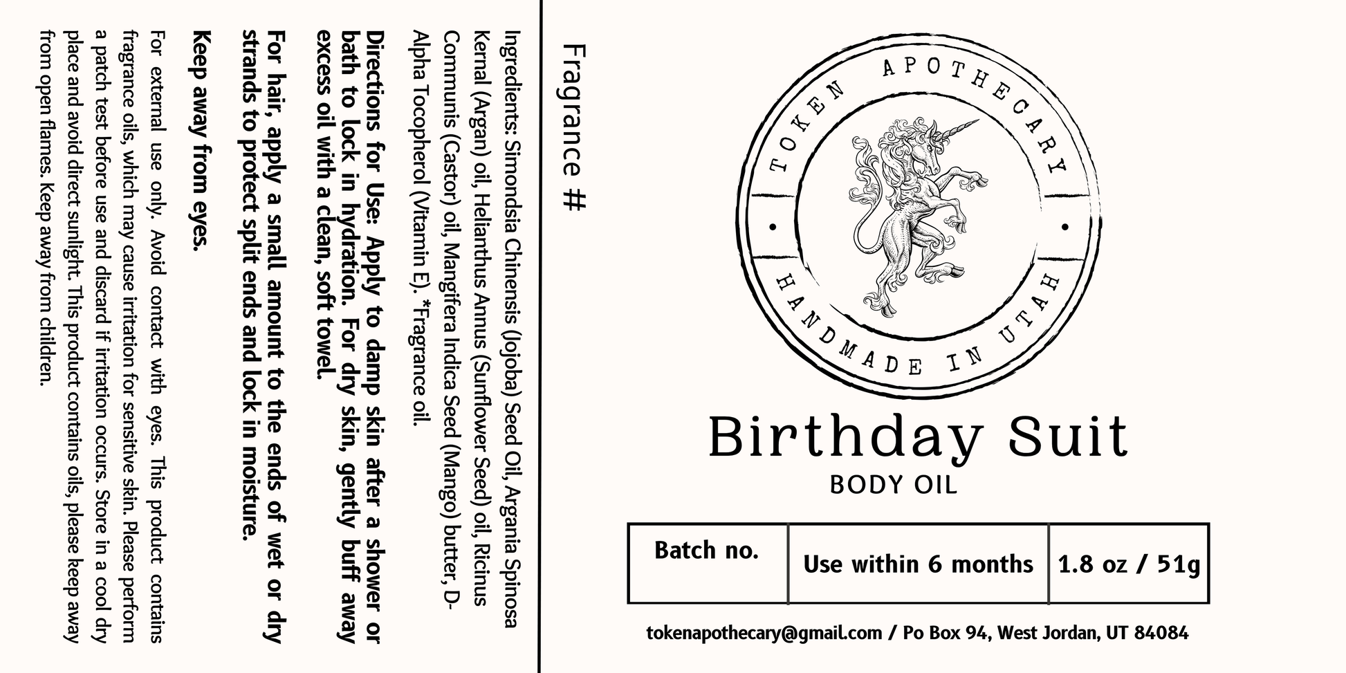 Ingredients: Jojoba oil, Argan oil, Sunflower oil, Castor oil, Mango butter, Vitamin E, *Fragrance, *Mica Powder